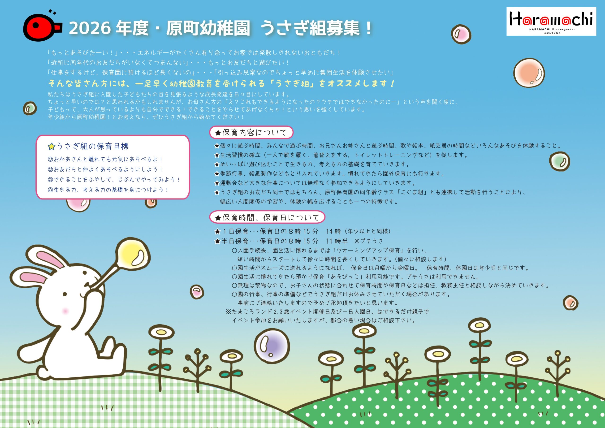 2025年度・原町幼稚園 うさぎ組募集!